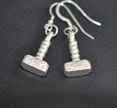 These silver earrings were made using a bronze Viking pendant from the 9th century. Being Viking in origin, the tiny hammer is of course a representation of Mjolnir, Thor’s hammer.